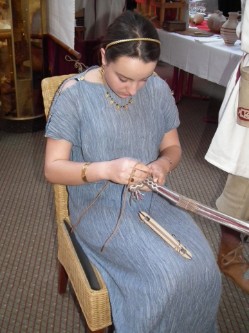 Interessierten Besuchern erklären wir gerne die charakteristische Kleidung der stadtrömischen Bevölkerung, die Unterschiede zur Tracht der Bevölkerung in den Provinzen und geben Tipps zur Herstellung.